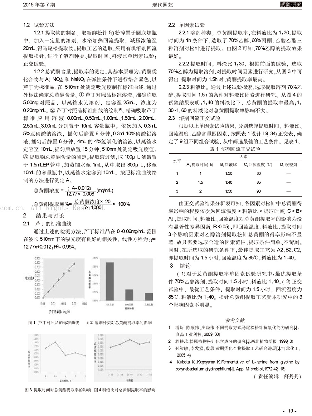 马尾松松针精油的最佳提取条件为:风干原料、6% MgSO₄溶液、料液比1:5.8、蒸馏时间4.47小时,提取率可达399.193 mg/g 。 ‌
